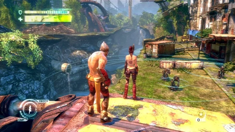 Enslaved это игра в жанре приключенческого платформера. История представляет собой переосмысление романа «Путешествие на Запад», написанного У Чэнъэнем. В отличие от оригинальной истории, действие которой разворачивается в фантастической версии древнего Китая, действие игры разворачивается через 150 лет в будущем постапокалиптическом мире после глобальной войны, где остались только остатки человечества, а также все еще активные военные машины, оставшиеся от конфликт.