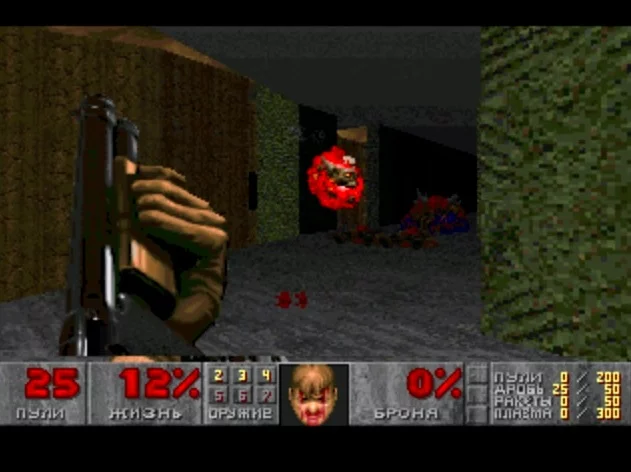 В различном оружии используются четыре разных типа боеприпасов (пули, снаряды, ракеты и энергетические элементы), поэтому важно подобрать правильный тип для определенного оружия. В игре отсутствуют некоторые аспекты, вдохновленные аркадой Wolfenstein, поэтому в ней нет дополнительных жизней или сокровищ, которые нужно собирать за очки, но многие другие бонусы по-прежнему доступны. Аптечки лечат урон, а броня в первую очередь защищает от его получения. Рюкзаки позволяют носить с собой больше боеприпасов, компьютерная карта показывает всю схему уровня на автокарте (включая любые секретные области), козырьки с усилением света освещают темные области, а костюмы для защиты от радиации позволяют путешествовать по пустошам, не получая повреждений. Также доступны пакеты берсерка (которые радикально увеличивают урон, наносимый кулаками), а также бонусы кратковременной невидимости и неуязвимости. Среди врагов, которых нужно уничтожить, есть бывшие люди, испорченные во время вторжения, а также демоны всех форм и размеров: бесы, метающие огненные шары, летающие черепа, демоны с розовой кожей с мощными укусами и большие одноглазые летающие чудовища, называемые какодемонами.
