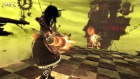 Можно активировать режим фокусировки, чтобы держать в поле зрения конкретного врага, и в этом режиме Алиса может развернуть зонтик для отражения приближающихся снарядов. Когда у нее мало здоровья, может активироваться монохромный режим истерии, в котором наносится гораздо больший урон, и Алиса может собирать врагов ради здоровья вместо зубов - основной валюты, оставленной врагами. На многих участках платформы она может совершить тройной прыжок в воздух и спланировать вниз. Во время своих путешествий Алиса побывает как в Лондоне XIX века, так и воображаемых мирах.