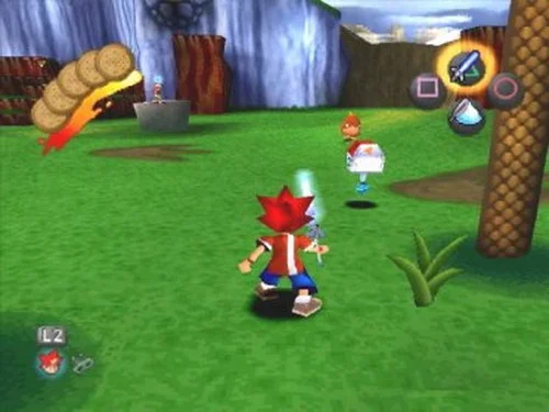 Побег мартышек пожалуй одна из самых оригинальных игр для платформы ПС1. В игре использовался исключительно контроллер Dual Shock и от игрока требовалось использовать оба аналоговых джойстика для управления героем игры. Ape Escape это история банды обезьян-изгоев, которые сбегают из парка развлечений и по ошибке врываются в лабораторию гениального профессора. Они находят изобретения под названием «Шлемы Пик-Пойнт» и мгновенно становятся разумными, а остальными управляет особенно изобретательная обезьяна по имени Призрак.