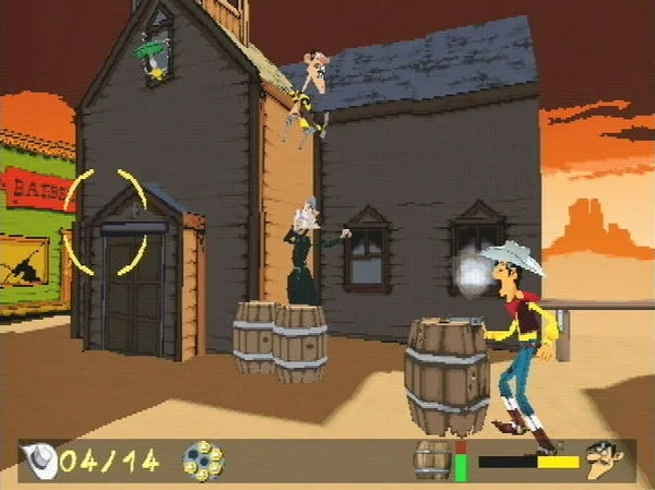 Счастливчик Люк: Вестерн основана на знаменитой серии комиксов о добром ковбое Счастливчике Люке. Вам в роли Счастливчика Люка предстоит ходить по фиксированным трассам на территории Мексики и иногда стрелять в бандитов, перемещая прицел своего пистолета из одной фиксированной позиции в другую. Также вам придется избегать их стрельбы и перезаряжать патроны в своем пистолете.