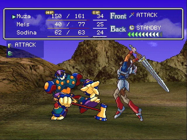 Thousand Arms от Atlus это ролевая игра с многогранным сюжетом и запутанным геймплеем. Как и во всех ролевых играх, здесь есть пошаговая боевая система, но атаковать может только персонаж, находящийся в позиции кулака. Два других члена вашей группы используются для поддержки обороны. Вы играете за Мейса Триумфа, наследника Триумфов, семьи Духовных Кузнецов. Вы можете добавить в военный отряд еще двух членов.