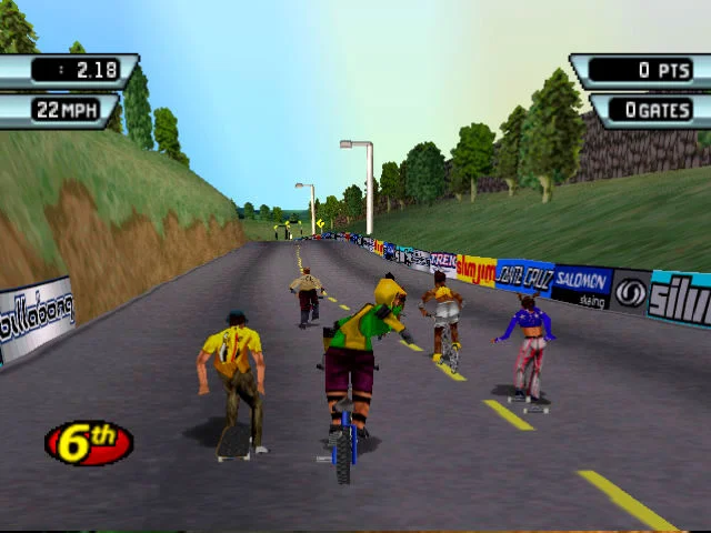 Также во время гонок игрок может проходить через ворота и выполнять различные трюки (в игре их можно выполнить более 270), что также принесет игроку дополнительные очки, которые можно потратить на лучшее оборудование. Во время гонок игроку разрешено бить своих противников, чтобы получить преимущество в гонке. В игре представлены 13 различных гонщиков. У каждого гонщика есть свои показатели силы, выносливости, вольного стиля, быстроты и ловкости. Каждый гонщик также специализируется только на одном типе оборудования для гонок. Тип оборудования, на котором они могут специализироваться это скейтбординг, роликовые коньки или велосипед. Само оборудование лицензировано из реальной жизни, например, Redline Double X и FS 840. Всего существует 70 различных типов оборудования. Каждая единица оборудования оценивается по максимальной скорости, способности к фристайлу, управляемости и ускорению. В игре представлено 27 различных трасс для гонок.
