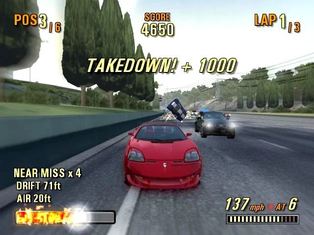 Burnout 3: Takedown гоночная игра, которая поощряет агрессивное вождение и позволяет вам использовать свой автомобиль, чтобы проложить себе путь к финишу, уничтожая соперников и вызывая массовые скопления нескольких автомобилей. Чем больше машин вы уничтожите, нанесете урон, тем больше событий и машин вы сможете разблокировать.