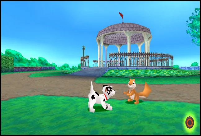 Сама игра в общих чертах повторяет сюжетную линию фильмов. Игрок может выбрать роль одного из двух далматинцев, Чудака или Домино, которые находятся на заднем дворе в поисках сокровищ. Вскоре игрок понимает, что игрушка, найденная в парке, была изготовлена на одной из игрушечных фабрик Круэллы де Виль; это намекает на то, что продажи игрушек Круэллы упали, что в конечном итоге приводит к проблеме в сюжетной линии.