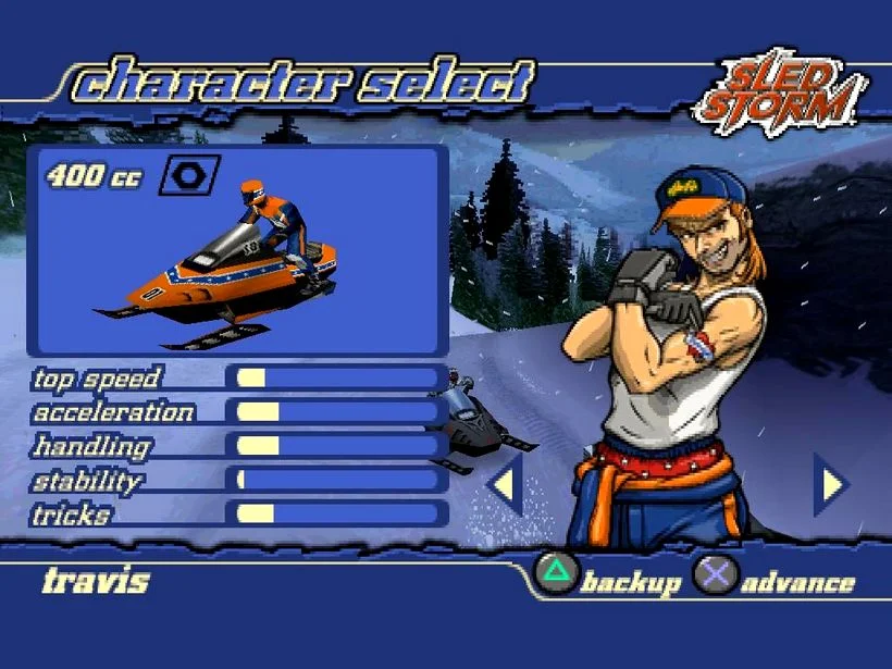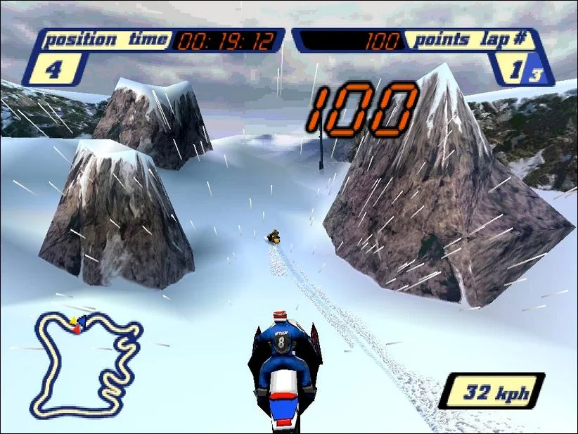Sled Storm - это серия игр о гонках на снегоходах. Она получила признание критиков благодаря своей оригинальной концепции и стала одной из первых игр. титулы в гонках на снегоходах. В настоящее время серия состоит из двух игр, обе из которых называются просто Sled Storm. В игре представлены снегоходы (называемые санями), трюки и четырнадцать заснеженных трасс, состоящих из скользких склонов, ненастной погоды и коварных скал. С самого начала можно было выбрать шесть гонщиков и еще двух можно было разблокировать, каждый из которых имел разные характеристики управления снегоходом.