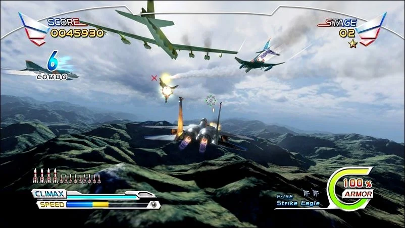 After Burner Climax представляет в серии два новых летных самолета: F/A-18E Super Hornet и F-15E Strike Eagle. Знаменитый F-14 Tomcat из предыдущих игр был заменен на F-14D Super Tomcat. Игрок выбирает самолет на стартовом экране.