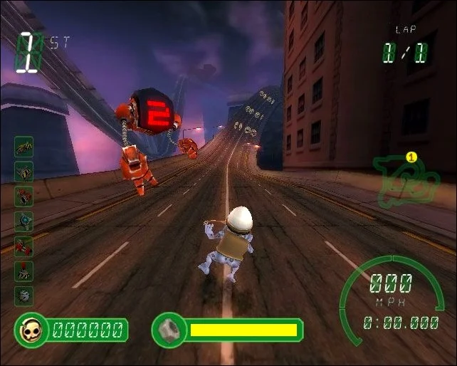 Возьмите Crazy Frog, известного по мелодии звонка и кучу его друзей, и врагов в сумасшедших гонках в стиле картинга по 12 трассам в 4х кубках (детских, веселых, сумасшедших и особенных) и собирайте сумасшедшие бонусы. Надеюсь, вам понравятся его фирменные звуки, потому что вы будете слышать их довольно часто. Вы можете играть с 4 друзьями в 3 различных многопользовательских режимах: чемпионат, одиночная гонка или битва.