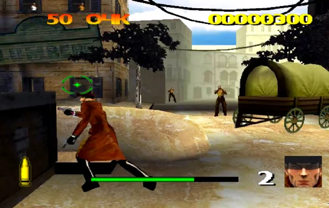 Dead Eye Jim это 3D-шутер в стиле вестерн, в котором можно играть от третьего лица. Игрок возьмет на себя роль шерифа Мертвого Глаза Джима, которому предстоит сражаться с бандитами, устраивающими беспорядки в пустынных городах. Игра очень похожа на игру Wanted для PS1 2004 года и предлагает несколько миссий, в которых бандиты появляются в окнах городских построек. Игрок начинает игру с тремя жизнями и имеет возможность уклоняться от огня противника. По мере продвижения игрока он может подбирать лучшее оружие и использовать его, пока оно не опустеет, и не наберет очки для получения высокого балла.