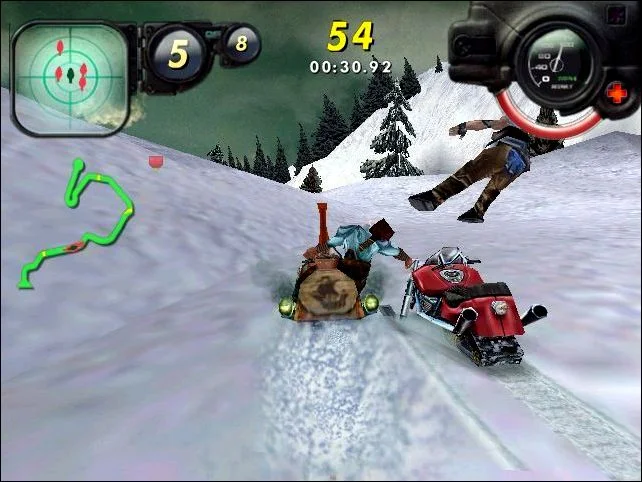 Выберите одного из 19 различных персонажей и саней, каждый из которых дает вам разные возможности, и приготовьтесь к битве на одной из 12 диковинных трасс от Швейцарских Альп до Атлантиды. Совершенствуйте свой снегоход и выполняйте любой из 62 различных трюков или заманите друзей на одну из специальных боевых арен для дуэли.