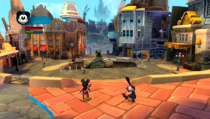 Disney Epic Mickey 2: The Power of Two возвращает Микки Мауса и счастливого кролика Освальда в Пустошь, альтернативный мир, наполненный 80-летними забытыми персонажами Диснея и аттракционами тематических парков. Но впервые Микки и Освальд объединят свои усилия как настоящие партнеры - Микки с его волшебной кистью, которая владеет краской и растворителем, и Освальд с его мощным пультом дистанционного управления, который позволяет ему управлять электричеством.