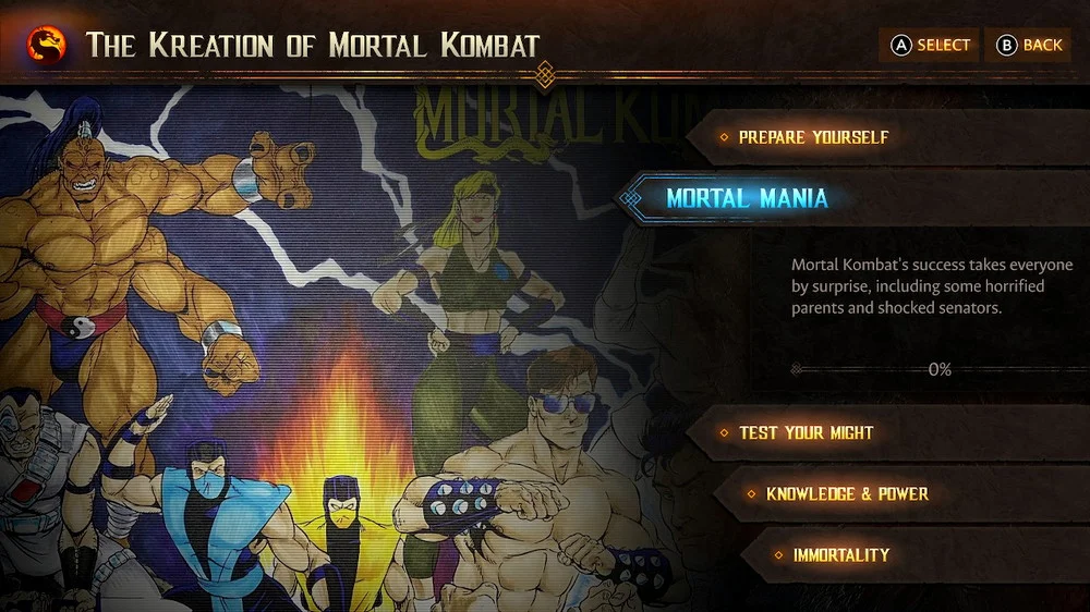 MK Legacy Kollection также позволяет игрокам исследовать мир Mortal Kombat, используя хронологию сюжета оригинальной серии и подробные истории персонажей, которые открывают истории, секреты и заглядывают за кулисы их создания.