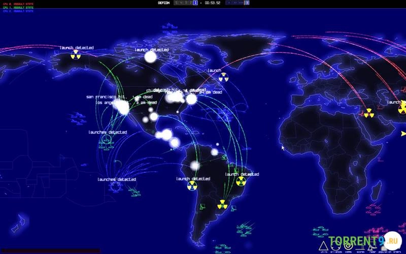 DEFCON – уникальная стратегическая игра в реальном времени, погружающая игрока в леденящую атмосферу глобальной термоядерной войны. Вдохновленная классическими фильмами времен Холодной войны и атмосферой паранойи 80-х годов, игра предлагает вам взять на себя роль генерала, управляющего ядерным арсеналом целого континента или страны. Ваша цель – нанести максимальный ущерб противнику, одновременно минимизируя потери среди собственного населения, прежде чем таймер обратного отсчета закончит свой ход и мир погрузится в радиоактивную зиму. Игра представляет собой мрачное, минималистичное графическое исполнение, напоминающее радарные дисплеи, что лишь усиливает ощущение отстраненности и нереальности происходящего апокалипсиса. Скачать игру DEFCON через торрент на ПК бесплатно, на русском языке вы можете по ссылке ниже.Скриншоты