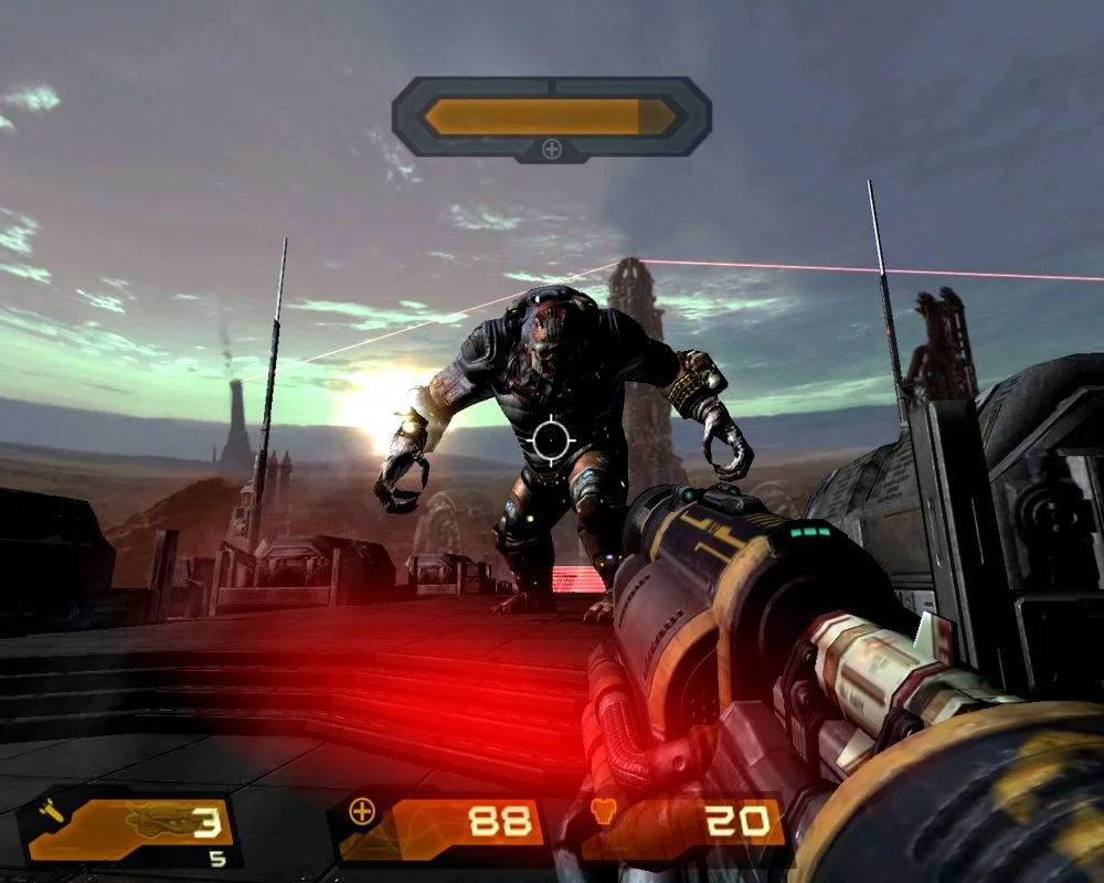 На этот раз тема одинокого солдата (из Quake I, II и серии Doom) заменена войной. Не такой масштабный, как военный FPS или даже Halo, но достаточно близко. Есть товарищи по отряду, некоторых из которых важно защищать, некоторые транспортные средства (ховертанк и мех) и часто меняющиеся цели для достижения. Арсенал содержит элементы из всех игр Quake (гвоздомет, рельсовая пушка, молниеносная пушка), а классический BFG был заменен на Dark Matter Gun. Оружие можно улучшать позже в игре, делая его намного более эффективным. В игре используется несколько улучшенная версия движка Doom 3. Варианты многопользовательской игры довольно ограничены, предлагая только стандартные режимы Deathmatch и CTF.