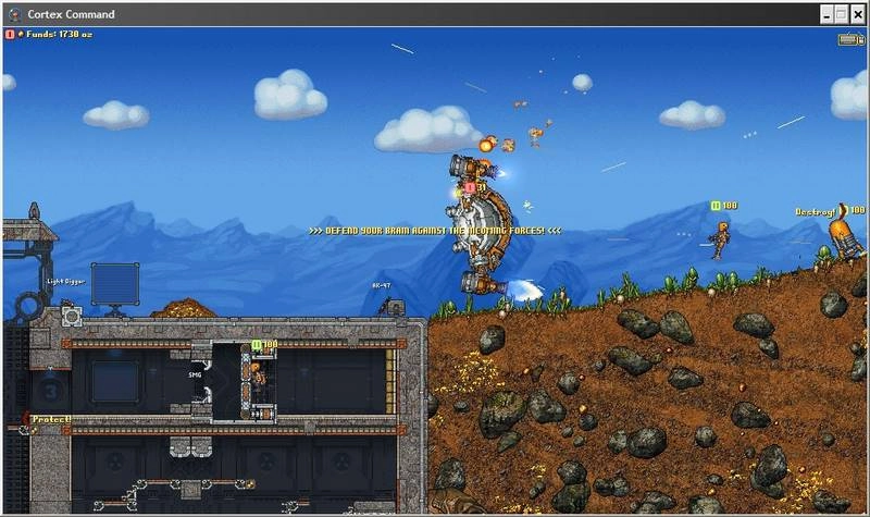 Игровой процесс в Cortex Command начинается с того, что ваш главный мозг, или «кора», высаживается в укрепленном бункере на планете, богатой золотом. Ваша первая задача — начать добычу этого ценного ресурса, используя специализированных шахтеров, одновременно возводя оборонительные сооружения для защиты своего ядра. Каждое решение о развертывании юнитов, покупке нового оборудования или выборе тактики напрямую влияет на исход миссии.
