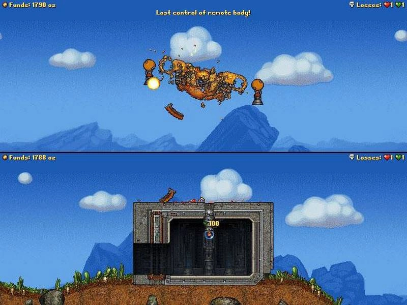 Cortex Command по-настоящему поражает своей продвинутой системой физики, которая управляет каждым аспектом игры. Все объекты, от снарядов до обломков и тел бойцов, реалистично взаимодействуют с окружением, создавая динамичные и непредсказуемые сценарии. Полностью разрушаемая местность позволяет игрокам буквально перестраивать поле боя, прорывая туннели, создавая укрытия или обрушивая своды на головы противников.