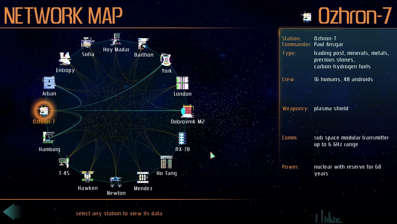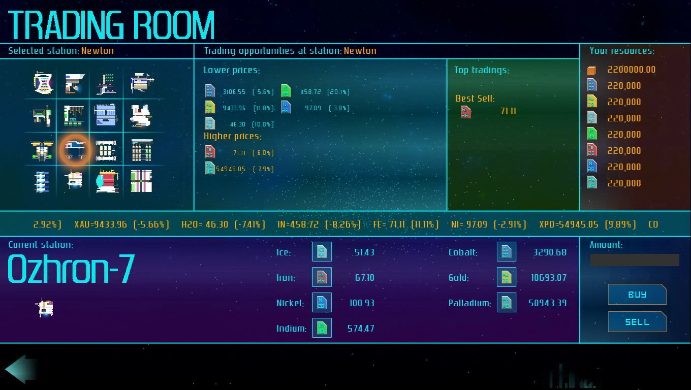 Глубокая экономическая система. Торгуйте товарами, управляйте ценами, стройте торговые маршруты и влияйте на галактический рынок. Игроки могут специализироваться на различных типах товаров, отслеживать спрос и предложение, а также использовать экономические флуктуации в своих интересах для получения максимальной прибыли.