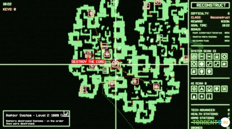 Процедурно генерируемые миры. Каждый космический корабль, который вы исследуете, создается случайным образом, предлагая уникальное расположение врагов, ловушек, систем безопасности и целей, обеспечивая высокую реиграбельность.