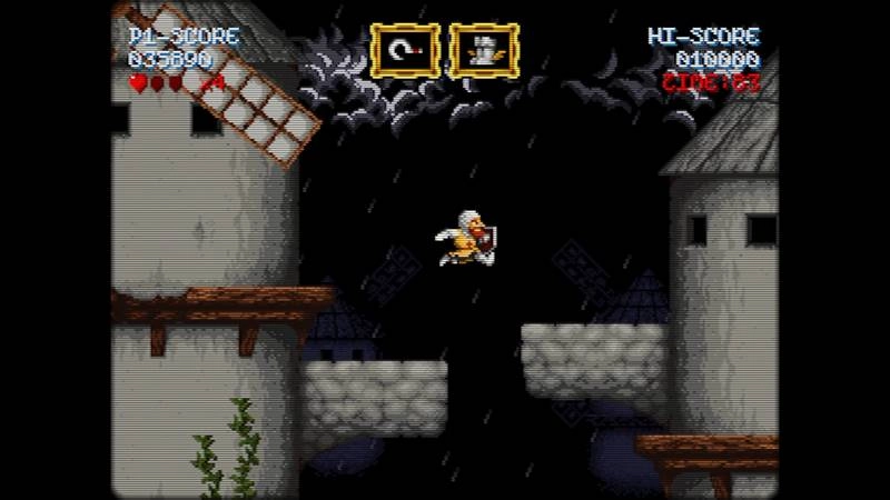 В распоряжении Дона Рамиро имеется стартовое оружие – меч, но по мере прохождения можно подбирать и другие виды: метательные топоры, кинжалы, священную воду, щиты и сапоги, увеличивающие скорость. Каждое оружие обладает своими характеристиками и дальностью действия, что требует стратегического подхода к выбору в зависимости от ситуации. Кроме того, можно найти специальные предметы, дающие временные бонусы, такие как повышение защиты или дополнительные жизни.