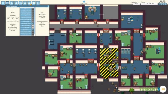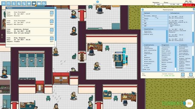 Управление персоналом. Нанимайте разнообразный штат – от гениальных, но эксцентричных хирургов до заботливых медсестер и трудолюбивых уборщиков. Управляйте расписанием, обучайте сотрудников, следите за их настроением и разрешайте конфликты, чтобы обеспечить слаженную работу всего коллектива.