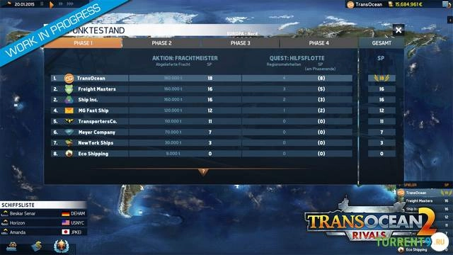 Стратегическая экономическая симуляция, посвященная управлению собственной судоходной компанией. Действие игры разворачивается в динамичном мире глобальных морских перевозок, где игрокам предстоит строить и развивать свою логистическую империю. Принимайте стратегические решения, управляйте флотом судов, оптимизируйте торговые маршруты и соревнуйтесь с соперниками за господство на мировом океане. Скачать игру TransOcean 2 Rivals через торрент на ПК бесплатно, на русском языке вы можете по ссылке ниже.Скриншоты