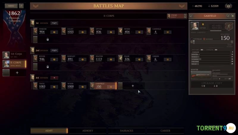 Игровой процесс начинается с выбора стороны конфликта – Союза или Конфедерации, после чего вы погружаетесь в глобальную кампанию. На стратегической карте предстоит выбирать следующую миссию, управлять ресурсами, нанимать и обучать новые подразделения, а также заботиться о ветеранах, переживших предыдущие бои. Каждый ваш выбор на этом этапе повлияет на доступные войска и их состояние в предстоящем сражении.
