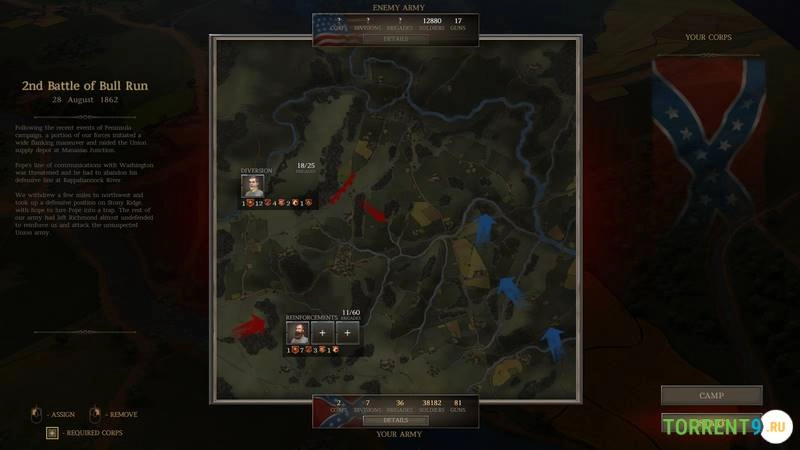После каждого сражения происходит подсчет потерь и анализ результатов. Вам предстоит принимать трудные решения о том, какие подразделения пополнить, какие офицеры получат повышение, а какие отряды будут расформированы из-за тяжелых потерь. Успешное командование и эффективное использование ресурсов помогут вам продвигаться по кампании, приближая свою сторону к окончательной победе в Гражданской войне.