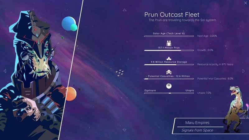 Конечная цель – разгадать Парадокс Ферми. Наблюдайте за взаимодействиями между видами, их успехами и неудачами, чтобы собрать воедино картину галактической жизни и понять, почему разумные цивилизации так редко встречаются или почему они не вступают в контакт. Каждое прохождение предлагает новый взгляд на эту фундаментальную загадку.