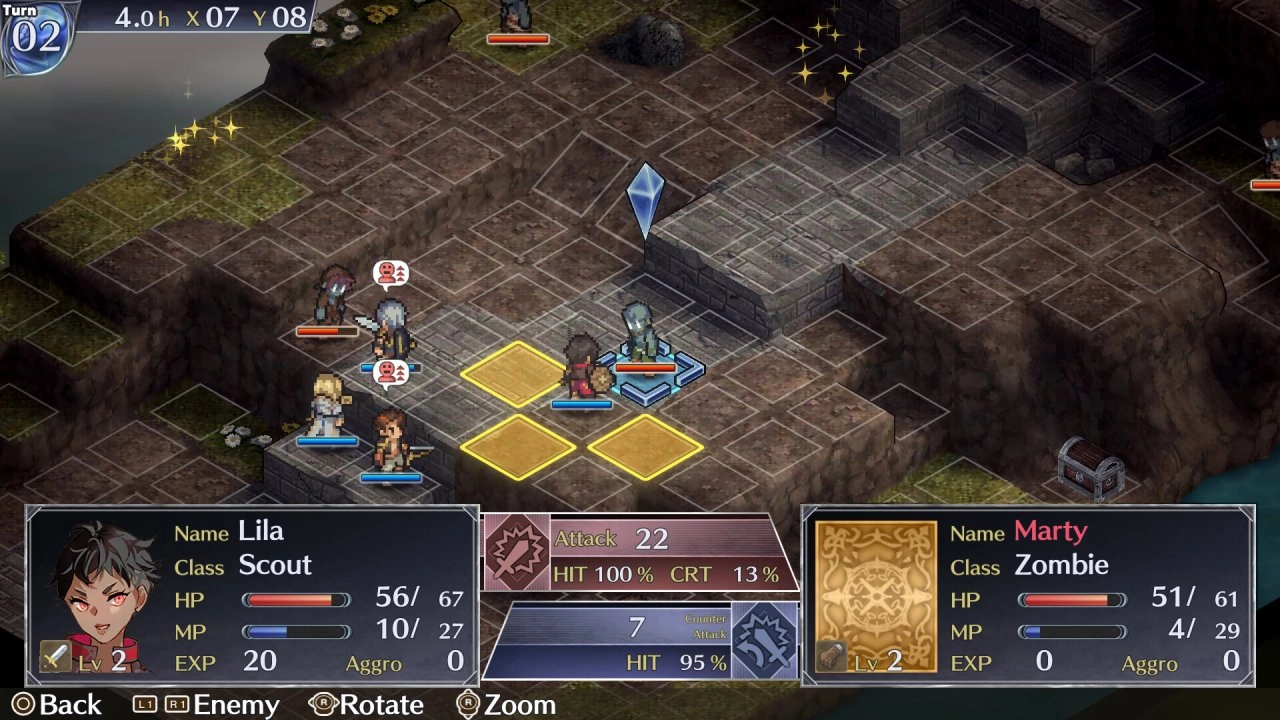 Сражения проходят в пошаговом режиме на сетчатых картах. Каждый персонаж имеет свой набор уникальных способностей, дальность передвижения и атаки. Важно учитывать сильные и слабые стороны врагов, использовать элементы окружения для укрытия или создания тактического преимущества, а также грамотно комбинировать навыки ваших бойцов. Успех в бою зависит не только от силы, но и от продуманной стратегии, умения предвидеть действия противника и адаптироваться к изменяющимся условиям.