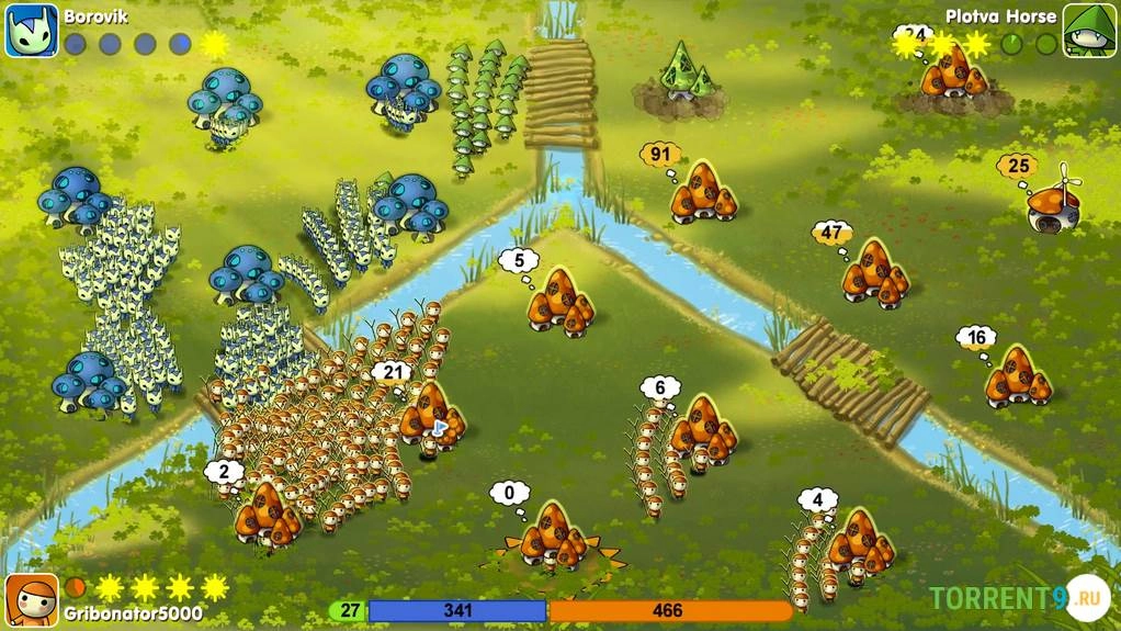 Mushroom Wars представляет собой динамичную стратегию в реальном времени, в которой игроки управляют армией грибных народов, сражаясь за доминирование на красочных картах. Очаровательные визуальные эффекты скрывают глубокий тактический игровой процесс, требующий быстрого принятия решений и стратегического планирования. Главная задача – захватывать и улучшать поселения, производить грибных воинов и сокрушать противников, чтобы одержать победу в непрекращающихся битвах. Скачать игру Mushroom Wars через торрент на ПК бесплатно, на русском языке вы можете по ссылке ниже.Скриншоты