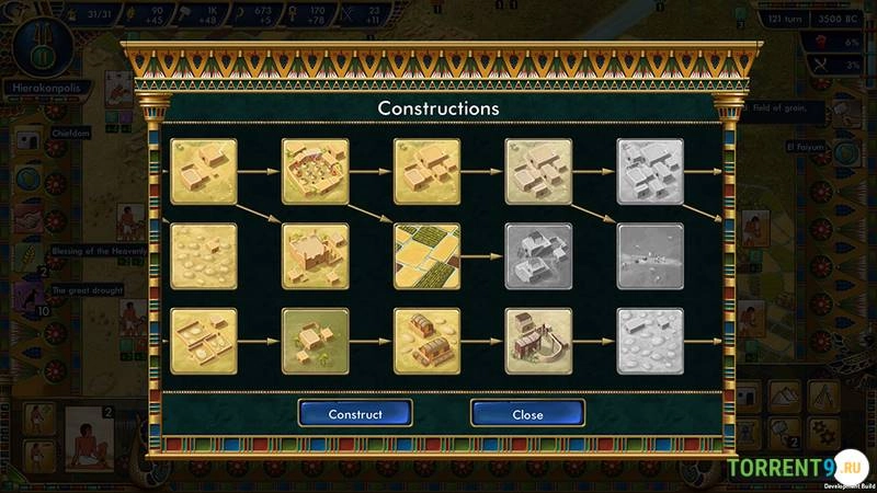 Масштабное развитие. Проходите через 4000 лет истории, начиная с небольшого поселения каменного века и заканчивая формированием первого объединенного египетского государства. Развивайте сельское хозяйство, осваивайте ремесла, возводите монументальные сооружения и расширяйте влияние своей династии.
