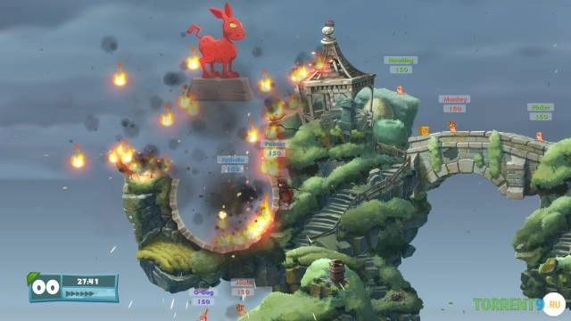 Обновленная графика и фирменный стиль. Игра встречает игроков яркой, нарисованной вручную 2D-графикой, которая прекрасно передает классическую атмосферу Worms, но с современной детализацией. Каждый взрыв, каждый выстрел и каждое движение червячка выглядит живо и динамично.