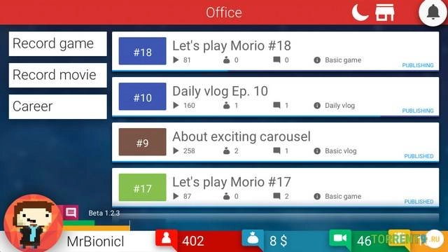 Tube Tycoon – увлекательный симулятор жизни и менеджмента, погружающий игроков в динамичный мир видеоблогинга. Приготовьтесь начать свой путь от скромного новичка до звезды интернет-пространства, управляя собственным каналом, создавая контент и взаимодействуя с миллионами подписчиков. Ваша цель – стать самым популярным и богатым ютубером, преодолевая трудности и используя все возможности для развития. Скачать игру Tube tycoon через торрент на ПК бесплатно, на русском языке вы можете по ссылке ниже.Системные требования