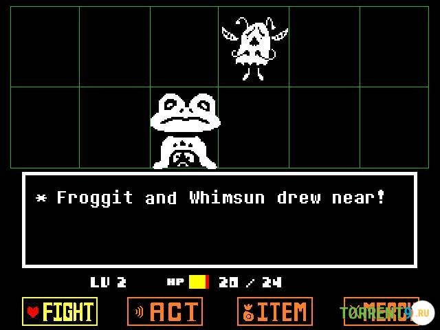 Особенности репака:Встречи с монстрами происходят как случайным образом, так и в рамках сюжетных событий. В бою игрок может выбрать один из четырёх вариантов действий: «Сражение» (Fight), «Действие» (Act), «Предмет» (Item) или «Пощада» (Mercy). «Сражение» предполагает классическую атаку, в то время как «Действие» позволяет взаимодействовать с монстром различными способами – поговорить, пошутить, флиртовать, что может изменить его настроение и позволить избежать боя.