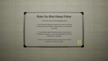 Установка:В процессе прохождения вы будете сталкиваться с моральными дилеммами и сложными выборами. Голос, который должен быть вашим проводником, может оказаться не таким уж и надежным. В то же время, присутствие второго голоса в вашей голове будет постоянно ставить под сомнение ваши решения и восприятие реальности.