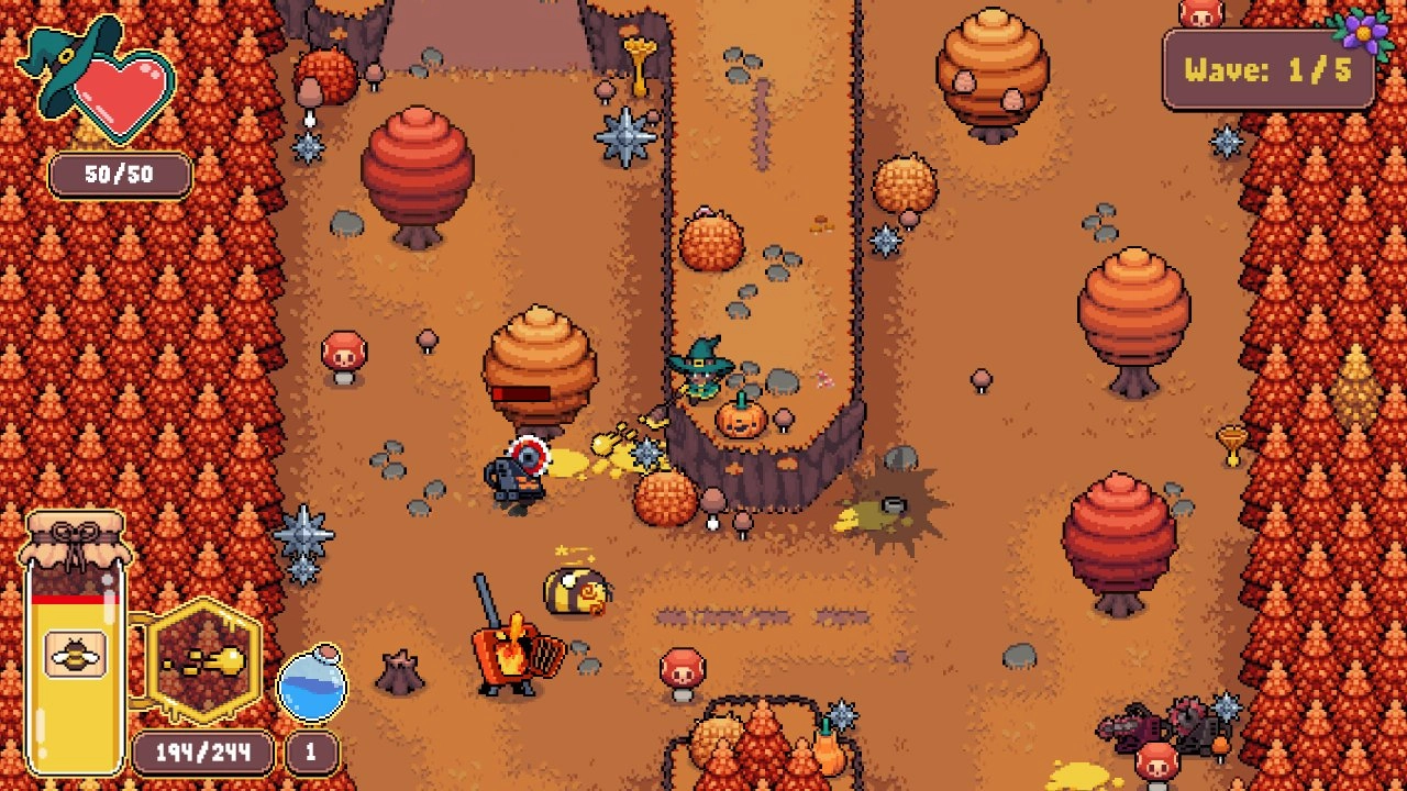 Каждый забег начинается с вашего улья, где вы можете выбрать начальные заклинания и проверить текущие улучшения. Затем вы отправляетесь в случайно сгенерированный мир, разделенный на зоны. Передвижение происходит из комнаты в комнату, каждая из которых кишит врагами, ловушками и ценными ресурсами. Ваша цель – выжить, побеждая противников и собирая пыльцу и нектар.